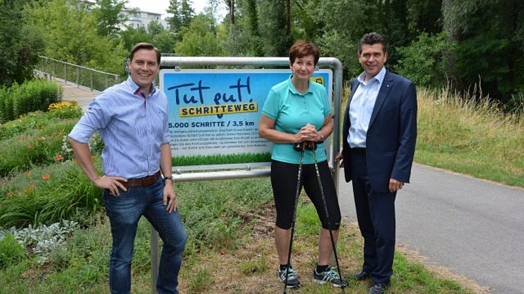 „Von den 573 Gemeinden in Niederösterreich sind bereits 399 bei der Aktion „Gesunde Gemeinde“, in denen sich über 3.000 Personen ehrenamtlich für die Gesundheit der Bürgerinnen und Bürger engagieren. Im Tulln gibt es 19 „Gesunde Gemeinden“. Dieses große Engagement ist mit ein Grund für die hohe Lebensqualität in unserer Heimat“, bedanken sich Landtagsabgeordneter Christoph Kaufmann und der zuständige Landesrat für Gesundheit, Ludwig Schleritzko. Die regionalen Gesundheitsangebote direkt in den Gemeinden sind besonders wichtig, denn dort werden alle Bürgerinnen und Bürger an ihrem Lebensmittelpunkt erreicht. Jedes Angebot ist genau an die Bedürfnisse und Wünsche der Bevölkerung angepasst. Inhaltliche Schwerpunkte konzentrieren sich dabei auf die Bereiche Bewegung, wir hier am „Tut Gut Schritteweg“ der Stadt Tulln, Ernährung und Mentale Gesundheit. Allen „Gesunden Gemeinden“ steht eine Vielzahl an Angeboten zur Verfügung. Primäres Ziel ist vor allem, die geplanten Aktivitäten direkt vor die Haustür der Gemeindebürgerinnen und Gemeindebürger zu bringen und sie so für einen gesunden Lebensstil zu begeistern.